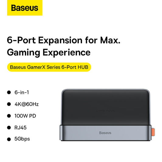 Baseus GamerX Series 6-Port Type C HUB Space Grey Type C to HDMI4K@60Hz
