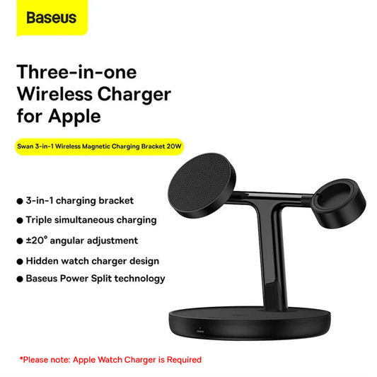 Baseus Swan 3-in-1 Wireless Magnetic Charging Bracket 20W Black Universal Version