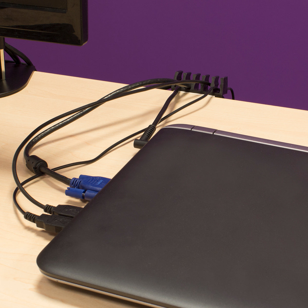 - Keeps cords neatly divided and aligned to prevent overlap or tangling.
