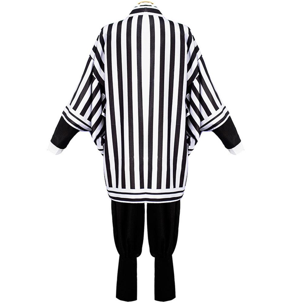 This Demon Slayer Obanai Cosplay Set includes the character’s signature Demon Slayer Corps uniform, striped haori (jacket), belt, and accessories that capture Obanai’s distinctive appearance.